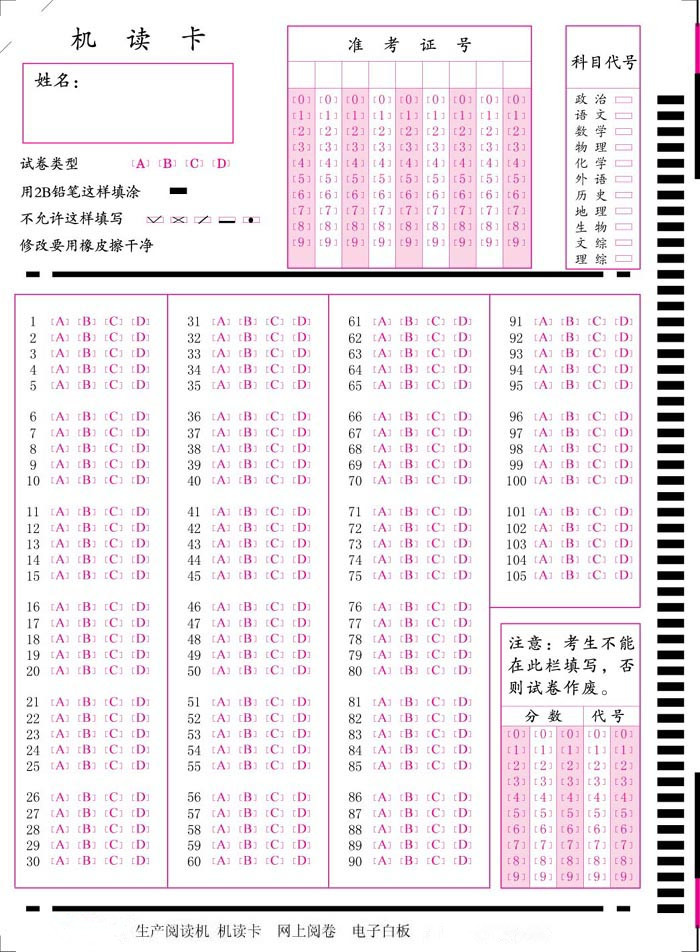 答案卡與學生卡類型不一致會有“A傳感器同步框計數值超界”這樣的錯誤,怎么辦?又到期末了,很多學校在考試中都會使用答題卡,既能減輕老師判卷的壓力,又能提高準確性,一般學校閱卡會有專人負責,考試后監考老師收取學生的答題卡交到閱卡部門,由判卷老師填涂一份標準答案卡,這時就會有這樣的問題,比如學生用的是50題的小卡,老師的答案涂的是105題的大卡,怎么辦,在按答按涂張小卡嗎?其實是有辦法處理的。
