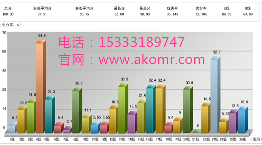 管理員可以對所有或部分考生成績進行查詢、統計、分析,并可以針對單個試題的進行正確率統計。